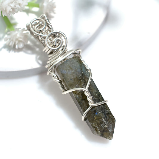 39ct Silver Labradorite Healing Pendant – Handmade Wire Wrapped Wholesale Stone Jewelry