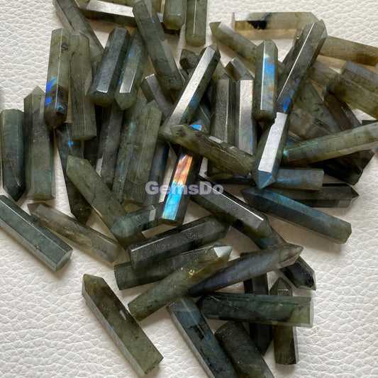 50 Pcs Natural Crystal Points Mix - Labradorite & Moonstone Healing Obelisks Wholesale Lot