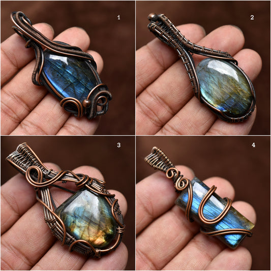 A One Quality! Natural Labradorite Gemstone Pendant – Copper Wire Wrapped Necklace