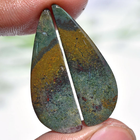 AAA Quality Bloodstone & Indonesian Picture Jasper – Earring Gemstone Pair