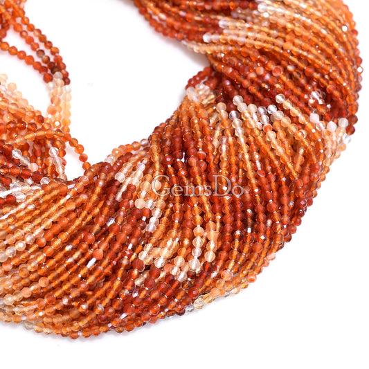 AAA Grade Carnelian Double-Shaded Round Beads 3mm Micro Cut Faceted Strand