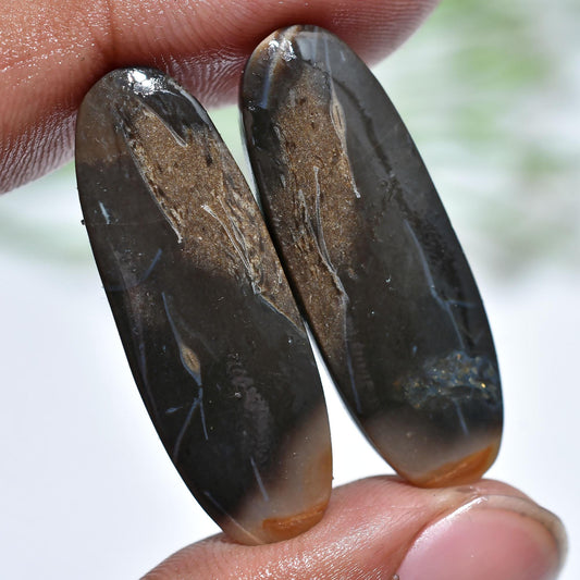 A-Grade Palm Root Agate Cabochon Pair – Hand Polished Oval Gemstones for Earrings