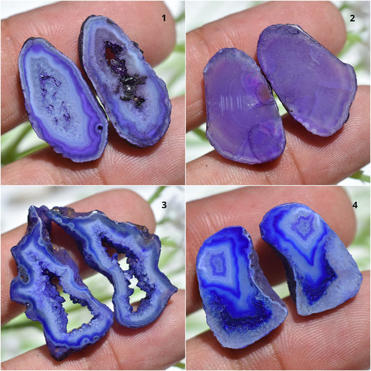 Agate Window Druzy Slice Pair - Blue & Purple Geode Druzy Gemstone Earrings Pair for Jewelry Making