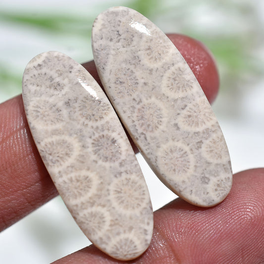 Exquisite Fossil Coral - Unique Fancy Shape Cabochon Pair for Christmas Gifts