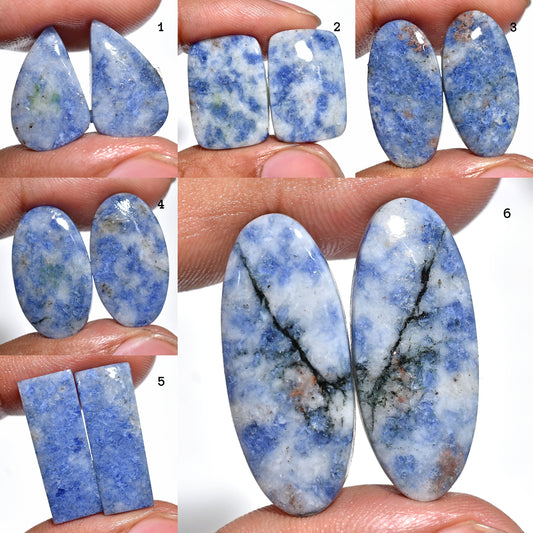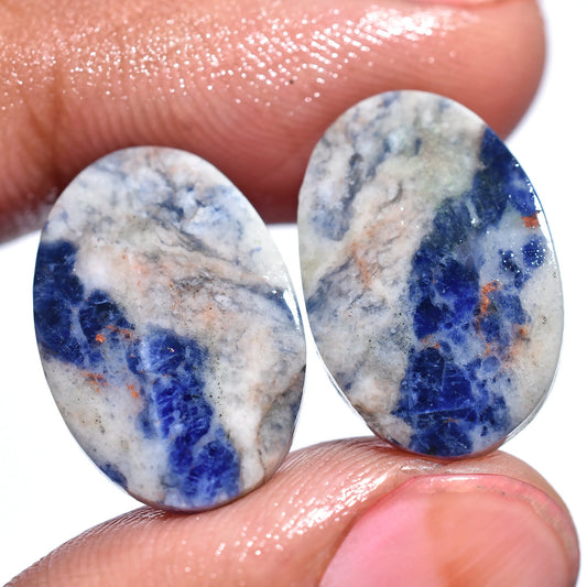 Amazing Blue Sodalite Cabochon Pair - Flatback Sodalite Gemstone Pair for Jewelry & Earring Making