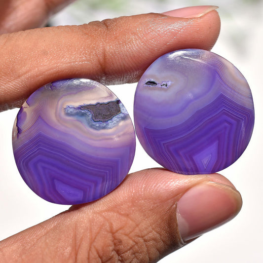 Amazing Botswana Agate Pair Cabochon – Round Purple Agate Pair for Earrings
