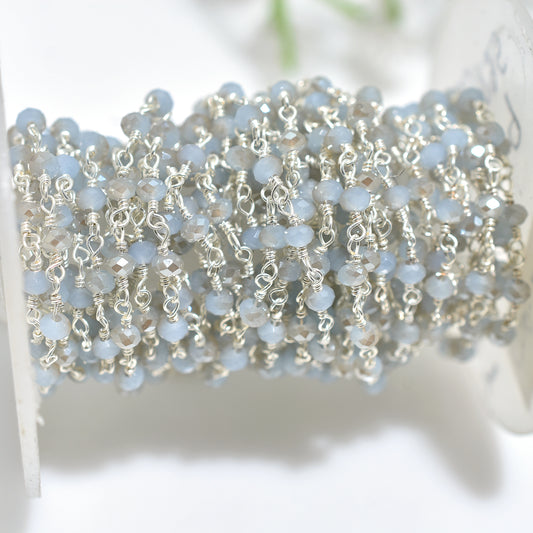Gleaming Chalcedony Silver Coated Rosary Chain – Wholesale Silver Plated Hydro Gemstone Beads for Custom Creations