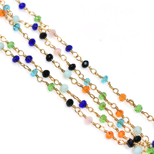 Handcrafted Multi-Color Disco Hydro Rosary Chain – Wholesale Gold Plated Wire Wrapped Stone for Jewelry