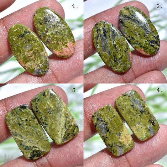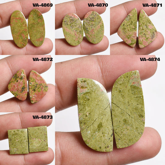 Amazing Unakite Gemstone Pair - Mixed Shape Unakite Cabochon Pair