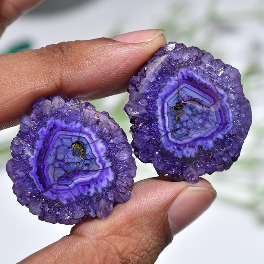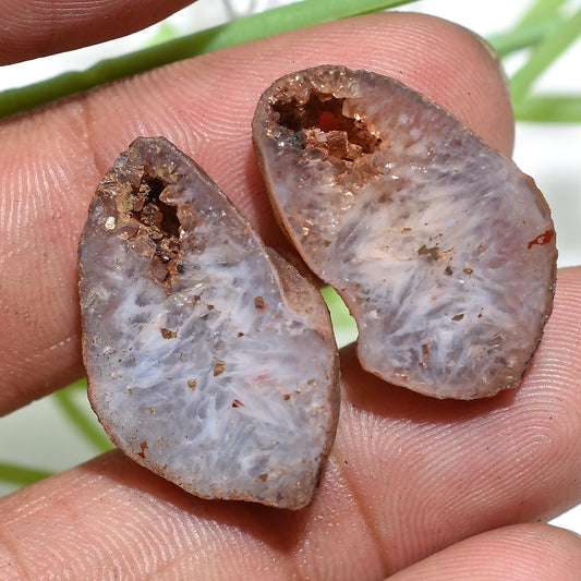 Amazing Solar Quartz Cabochon Pair – Geode Agate Stalactite Slices for Earring