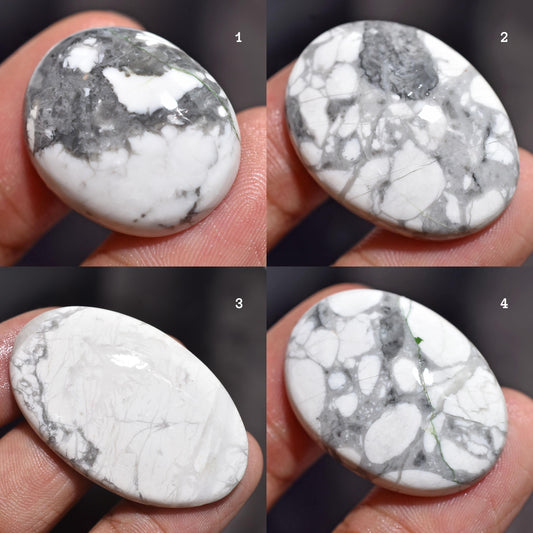 Amazing White Howlite Gemstone - Oval Shaped Smooth Cabochon for Pendant Making