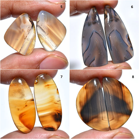 Artisanal Montana Agate Earrings Set - Unique Matching Cabochon Pair