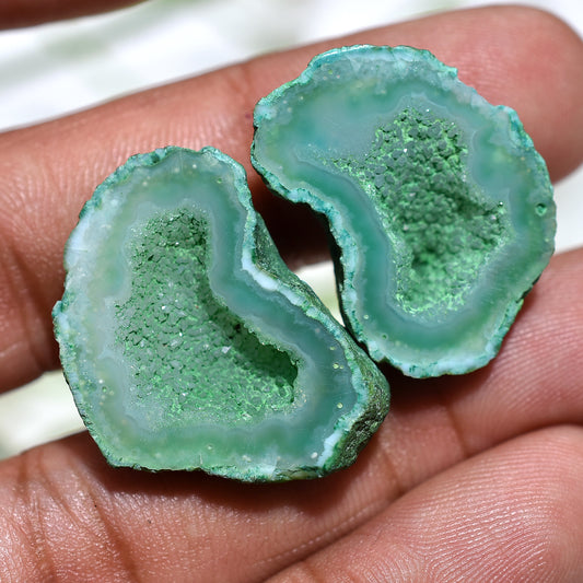 Artisan Solar Quartz Druzy Gemstone Pair– Natural Bulging Geode for Crystal Craft Supplies