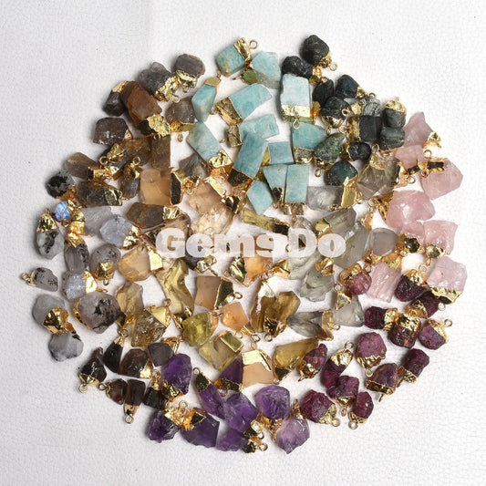 Assorted Rough Gemstone Connectors | Multi Raw Gold Necklace Pendants & Charms