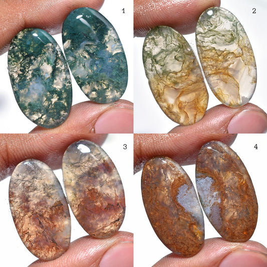 Attractive Agate Gemstone Pair – Oval Moss Agate Cabochon for Custom Earrings