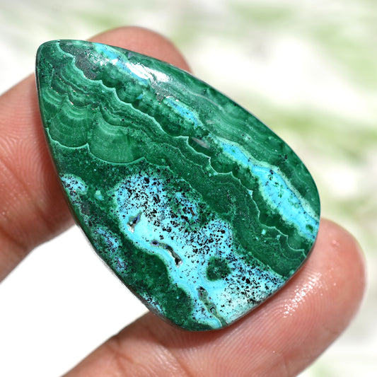 Artisan Pear-Shaped Malachite Cabochon – Dramatic Dark Green Swirls & Sky-Blue Striations