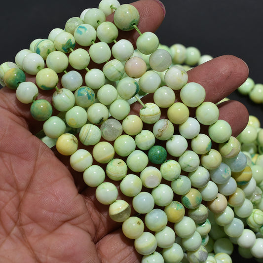 Natural Green Opal Beads - Smooth Round Shaded Gemstones Strands For Jewelry