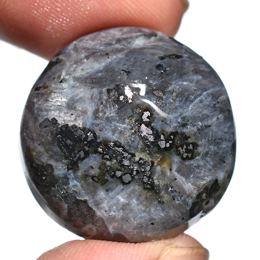 Natural Grey Larvikite Pendant – Smooth Round Crystal for Handmade Jewelry Gifts