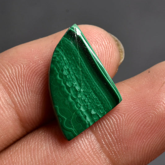 Natural Malachite Cabochon - Free Form Shape & Pattern Smooth Gemstone (14x26x5mm,/32ct)