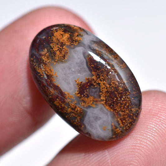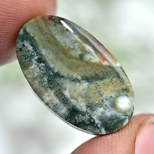 Rare! Moss Agate Cabochon, Oval Shaped Loose Polished Pendant Making Stone