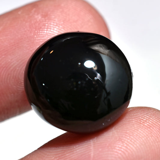 Natural Black Onyx Cabochon, Wholesale Loose Polished Gemstone (15x17x8mm,/15ct)