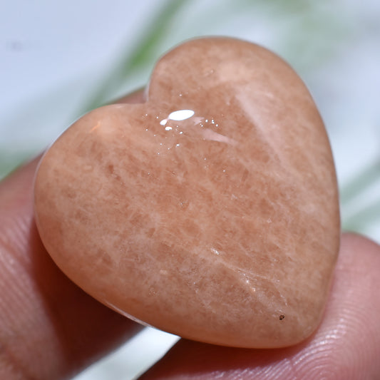 Natural Peach Moonstone Heart Cabochon – Smooth Polished Healing Crystal for Jewelry Making