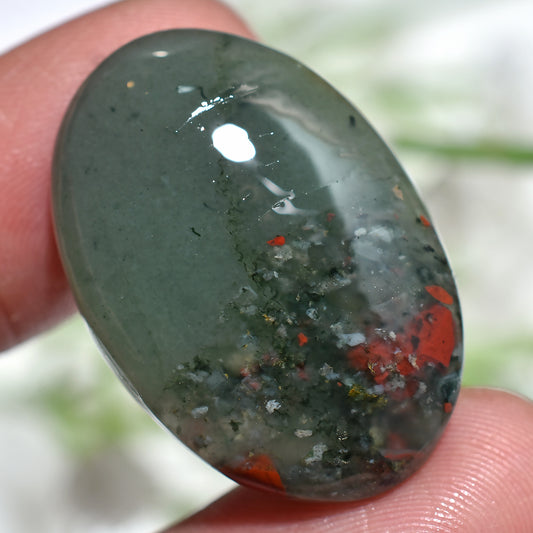 Rare Bloodstone Cabochon - Oval Shaped Polished Gemstone for Jewelry (10x19x2mm,/5ct)