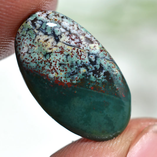 Natural Ocean Jasper Cabochon, Oval Shaped Polished Gemstone (17x22x3mm,/13ct)