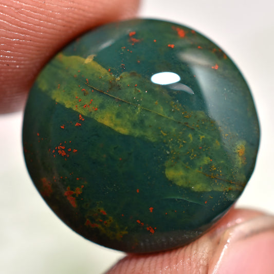 Natural Bloodstone Cabochon, Round Polished Gemstone for Jewelry (17x17x2mm,/13ct)