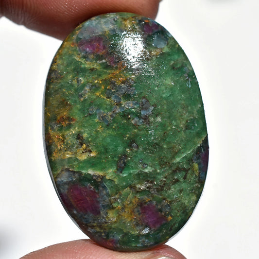 Natural Ruby Fuchsite Cabochon - Smooth Green Pink Oval Gemstone