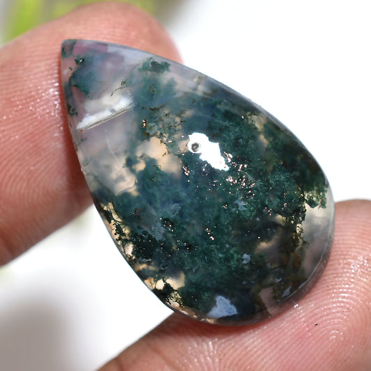 Dark Green Moss Agate Cabochon - Pear Shaped Flat Back Gemstones