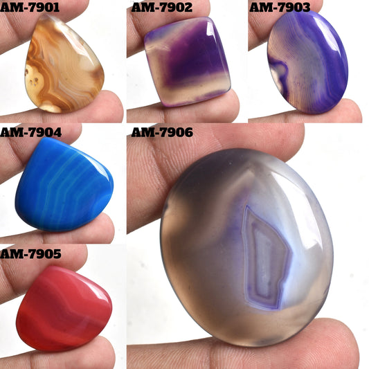 Botswana Agate Gemstone Cabochon Lot – Smooth Flatback Agate Crystals in Mixed Shapes