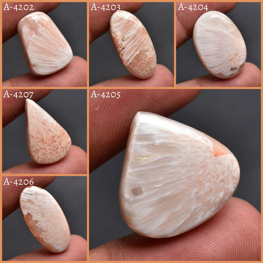 Scolecite Gemstone Cabochon – Natural Pink & Peach Scolecite for Pendant Making, Wholesale Cabochon