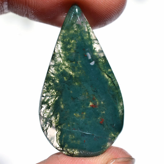 100% Natural Moss Agate Loose Cabochon – Pear Shaped, Polished, Ideal For Jewelry