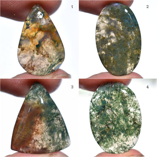 Moss Agate Cabochon - Pear & Oval Loose Agate Gemstone for Handmade Jewelry, Rings & Pendants
