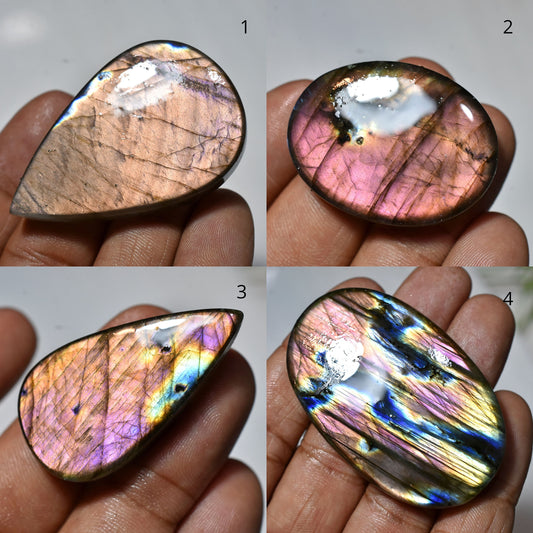 Purple Multi Fire Labradorite Cabochon – Oval & Pear Shape, Eye-Catching Flash Healing Crystal