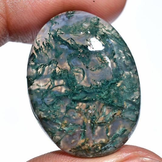 Moss Agate Loose Cabochon - Green Oval Shape Agate Gemstone for Custom Pendant Making
