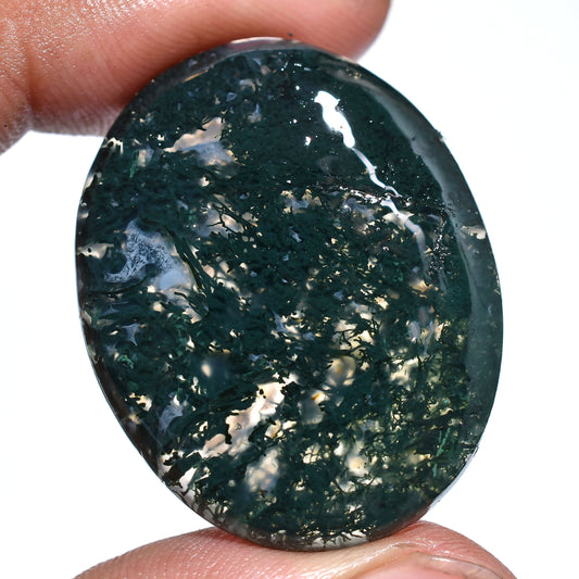 RARE Moss Agate Cabochon - Designer Oval Flat Back Gemstone for Pendant & Jewelry Making
