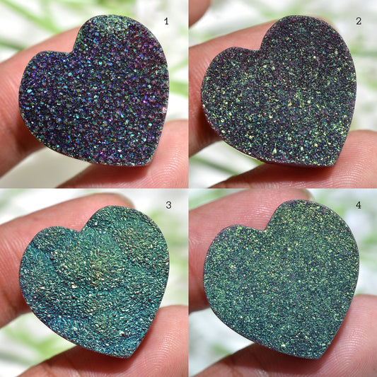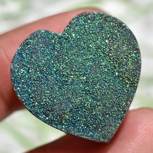Graceful Sparkly Rainbow Druzy Heart, Green Heart Titanium Druzy Cabochon for Jewelry Making - Wholesale