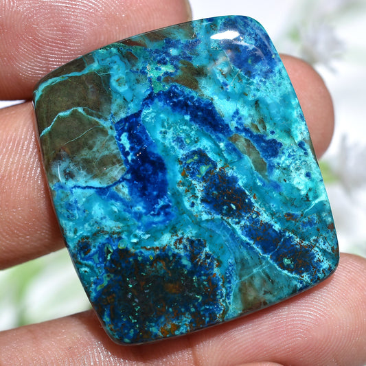 Square Shaped Shattuckite Azurite Gems – Polished Flat Back Stones for Pendant Making