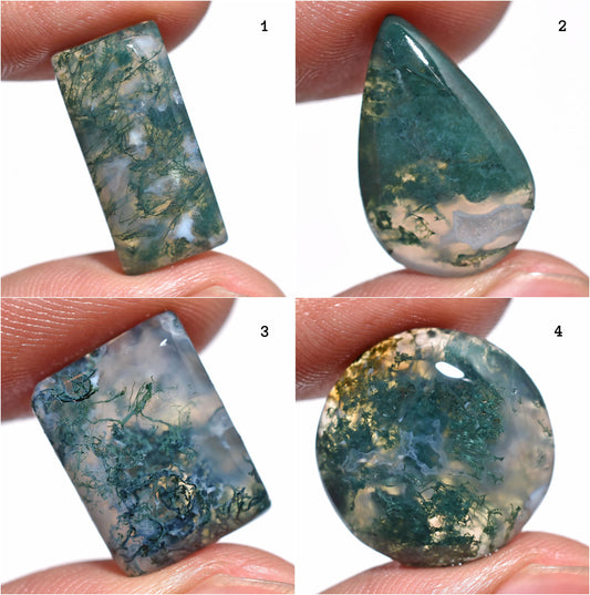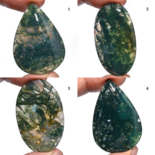 Unique Moss Agate Cabochons – Green Oval & Pear Shaped Stones for DIY Jewelry