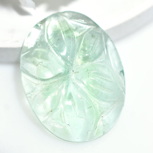 Flower Design Fluorite Cabs, Green Fluorite Carving, Smooth Cut Fancy Shape, Loose Gems, Hand Carved For Making Pendant
