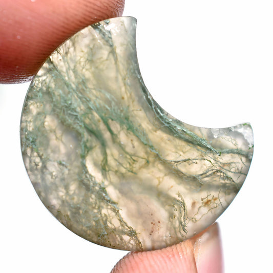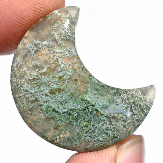 Beautiful! Moss Agate Moon Cabochon - Crystal Carving Moon Gemstone, Half Moon Gemstone For Jewelry, Smooth Polished Pendant Making Gemstone