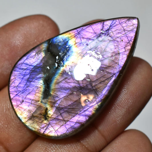 Purple Labradorite Gemstone - Pear-Shaped Spectrolite with Rainbow Fire, Flashy Smooth Crystal Cabs