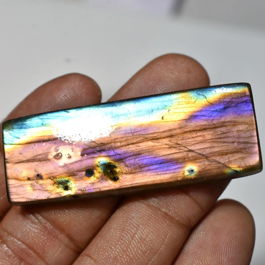 Attractive Purple Fire Labradorite Cabochon, Smooth Flat Back Stone for Jewelry Making