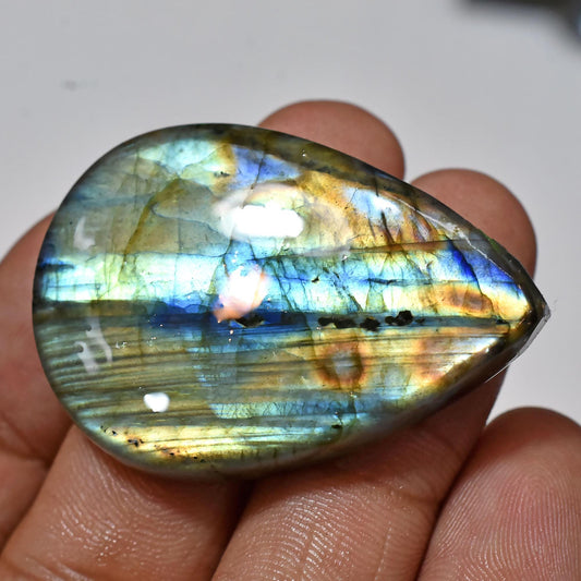 Rainbow Labradorite Crystal Stone – Flashy Teardrop Magical Cabochon