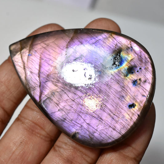 Purple Fire Labradorite Cabochon, Pear Shaped Flashy Smooth Stone, Healing Crystal Stone