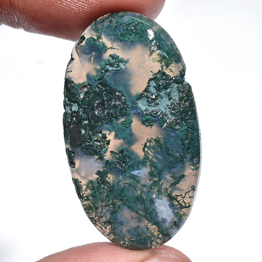 Green Moss Agate Cabochon - Hand Polished Gemstone for Pendant Making