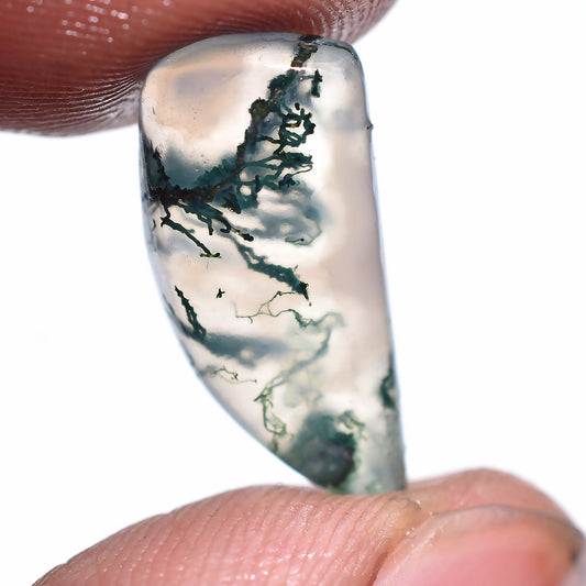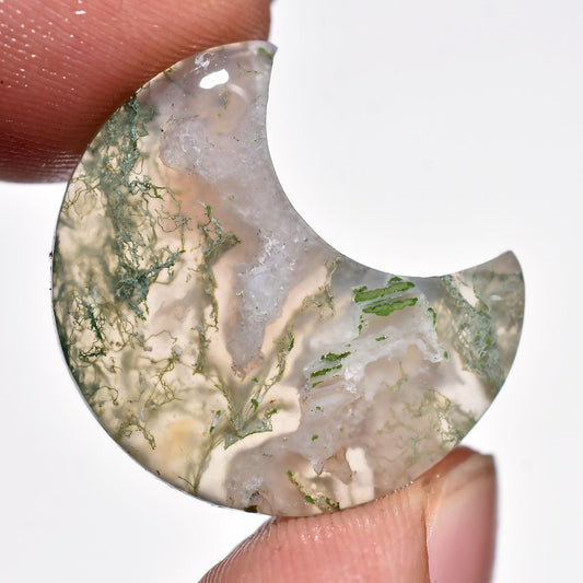 Moss Agate Crescent Moon Cabochon - Green Moss Agate Stone for Jewelry Making