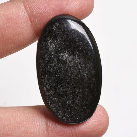 Natural Black Obsidian Cabochon - Oval Polished Gemstone, Loose Silver Shine Black Stone for Unique Jewelry